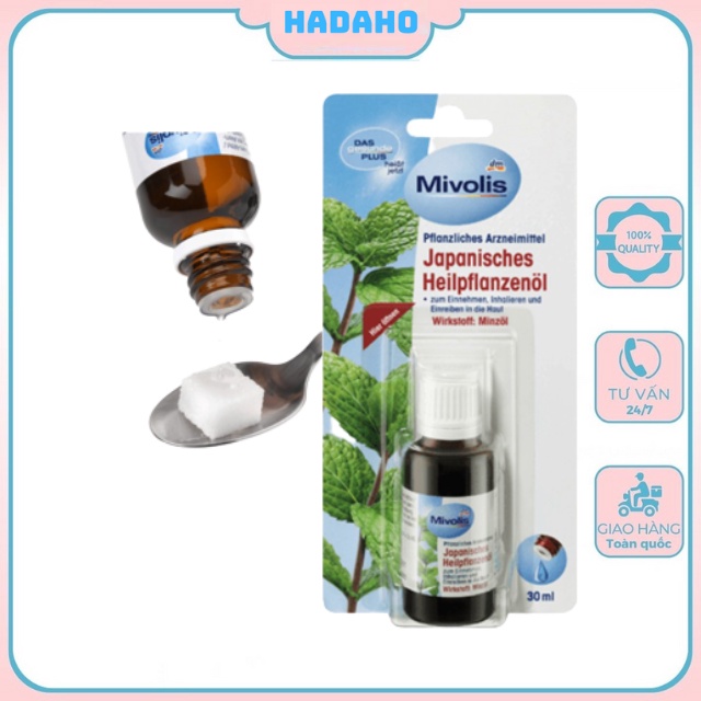 TINH DẦU BẠC HÀ JAPANISCHES HEINPFLANZENOL Xuất xứ: Đức Dung tích : 30ml Khi bạn căng thẳng, mệt mỏi, nhức đầu, chóng mặt, vì làm việc quá sức hãy sử dụng ngay dầu thảo dược Japanisches Heilpflanzenöl bạn nhé. Dầu thảo dược Japanisches Heilpflanzenöl + Chứa tinh dầu bạc hà tự nhiên + Xoa dịu các triệu chứng như đau đầu căng thẳng hoặc cảm + Dùng để chống cảm lạnh, thông mũi xông cho cảm lạnh + Xông bằng miệng để thông ở dạ dày, ruột và chống đầy hơi Chỉ cần bôi 1 chút dầu thảo dược lên cánh mũi và 2 bên thái dương -> Dầu thảo dược sẽ giúp bạn có cảm giác thoải mái, dễ chịu, thư thái và nhanh chóng xua tan cơn mệt mỏi hoặc bôi lên lòng bàn tay, sau đó xoa vào chỗ đau nhức, mùi hương đặc trưng của bạc hà sẽ nhanh chóng thấm vào da mang lại cảm giác ấm nóng dễ chịu.