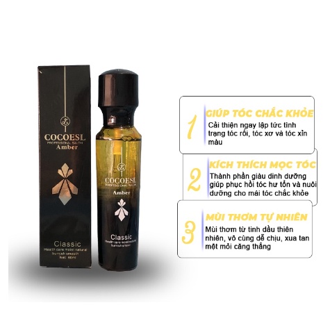 Giới thiệu Tinh dầu dưỡng tóc cao cấp COCOESL Amber 60ml - Phục hồi tóc hư tổn và chẻ ngọn 100% tinh dầu nguyên chất Macadamia CT15