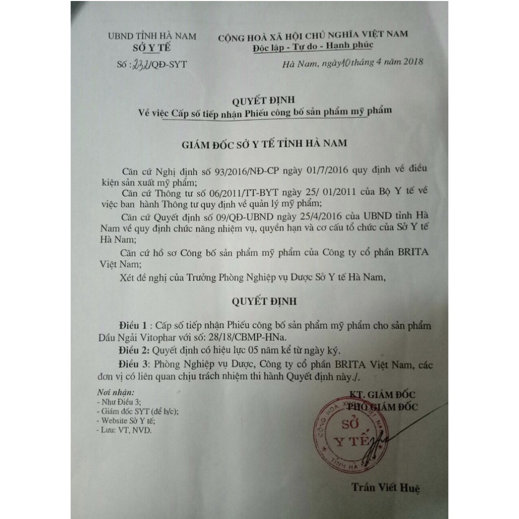 Tiêu chuẩn: TCCS Số công bố sản phẩm Số: 28/18/CBMP-HNa