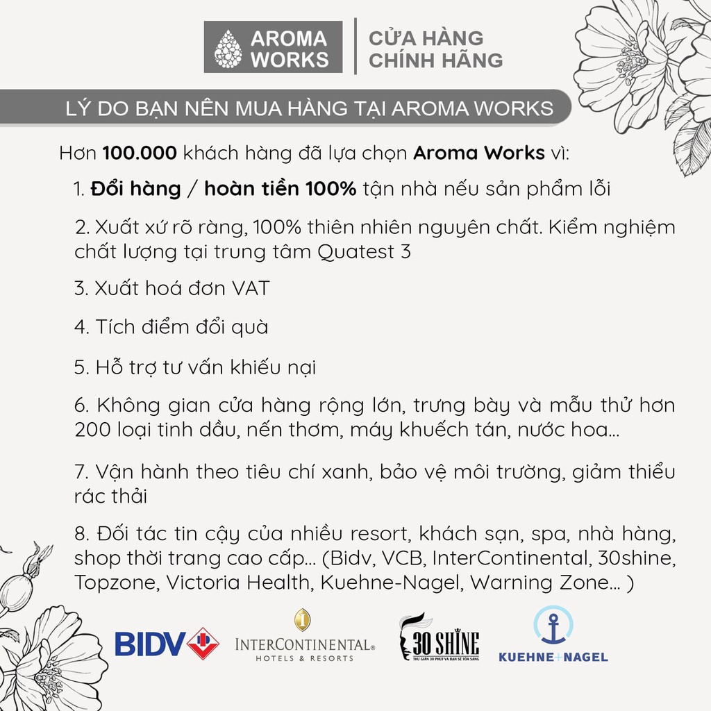 - Tên tiếng Anh: Aroma Works Rosa Gallica Eau de Parfum - Thương hiệu: Aroma Works. - Xuất xứ: Việt Nam. - Nguyên liệu: Nhập khẩu Singapore. - Có xuất hóa đơn VAT. - Kiểm nghiệm chất lượng tại trung tâm Quatest 3 Việt Nam.