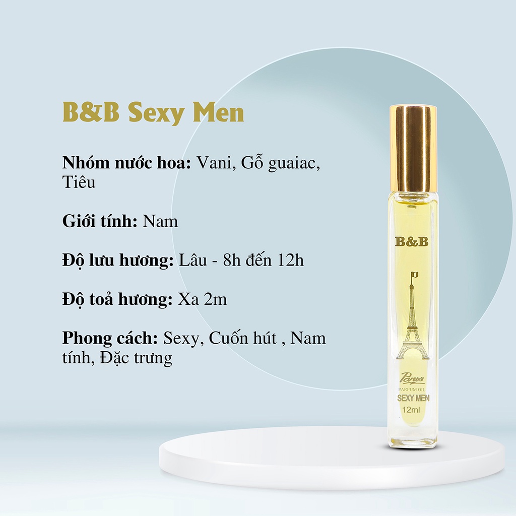 Giới thiệu Tinh dầu nước hoa nam B&B de Sexy Men EDP 12 ml lưu hương lâu đặc trưng phong cách Pháp