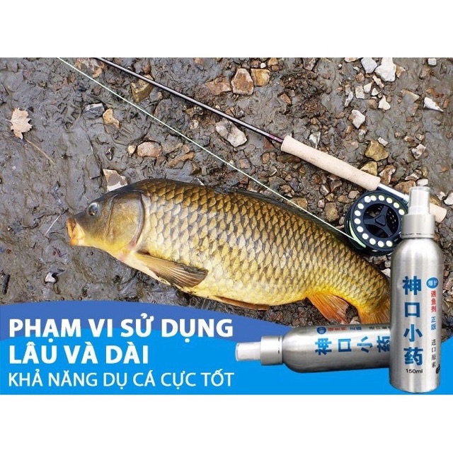 Tinh dầu dụ tổng hợp các loại cá:trắm,chép,trôi,mè.... + Thu hút cá nhanh, giữ cá trong một thời gian dài, có sức mạnh thu hút cá cực mạnh + Phạm vi sử dụng xa, bền mồi và lâu tan trong nước + Một chai 150 ml, có thể sử dụng 200 lần +Thành phần: các loại thảo dược thiên nhiên rất an toàn ➡️Cách sử dụng: Cứ 200 gram mồi, phun 4 đến 8 lần vào nước mồi, trộn với mồi bột
