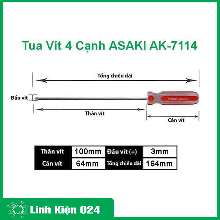 Giới thiệu Tô vít 4 cạnh, tua vít Asaki AK-7124, AK-7114 kích thước 5x100mm, 3x100mm