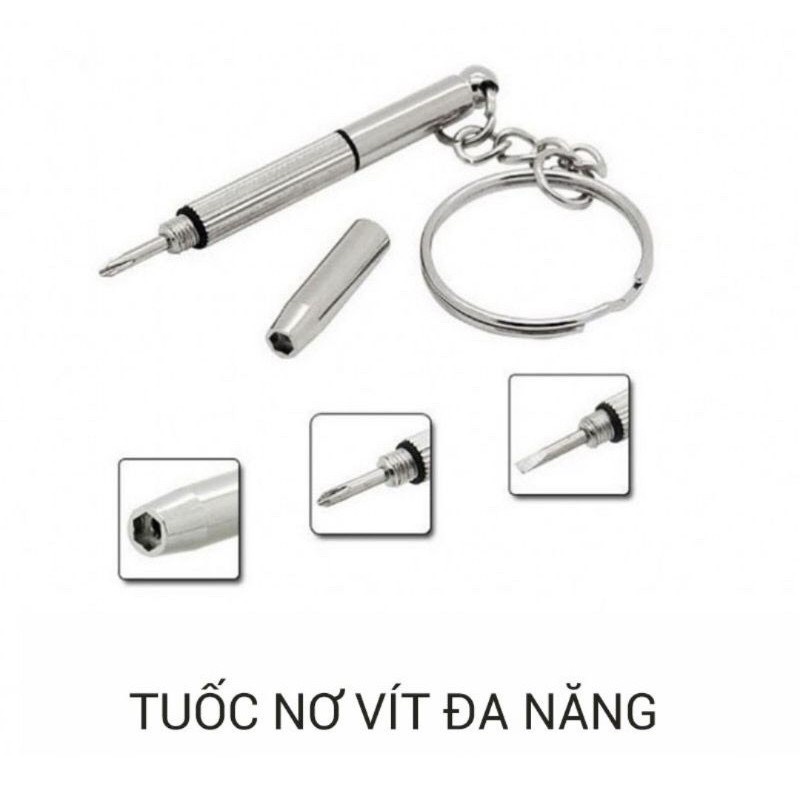 Tô vít mini 2 đầu kiêm móc khóa Được sử dụng để sửa chữa hoặc thắt chặt các ốc vít trên kính mắt, kính râm, đồng hồ, điện thoại di động Kèm một móc khóa, di động và dễ dàng mang theo Sản phẩm này rất tiện lợi và dễ sử dụng Chất liệu: thép hợp kim crôm vanadi Tổng chiều dài: 60 cm Chiếc tua vít nhỏ này có 2 đầu 1 đầu 4 cạnh và 1 đầu 2 cạnh. Với kích thước mini, chiếc tua vít này phù hợp để tháo mở gọng kính, đồng hồ hay cả những ốc vít nhỏ trên điện thoại của bạn.