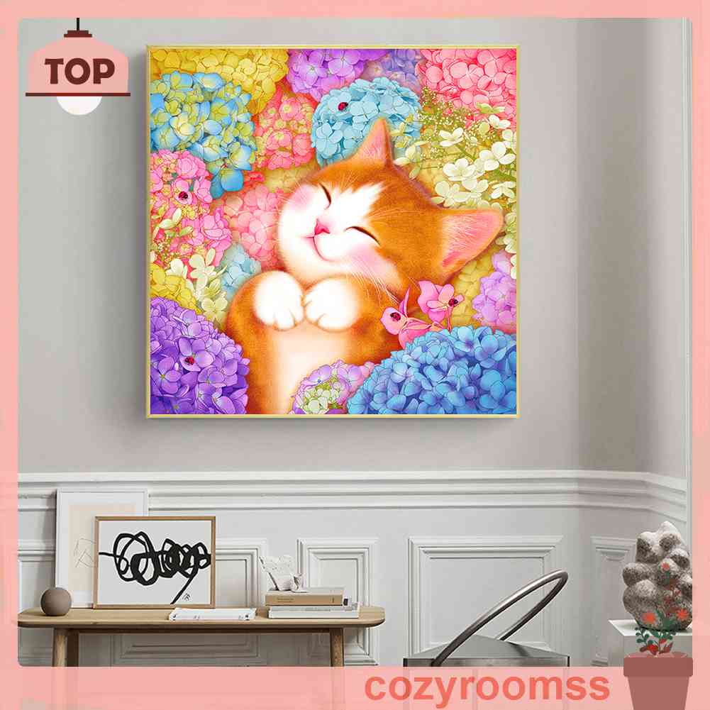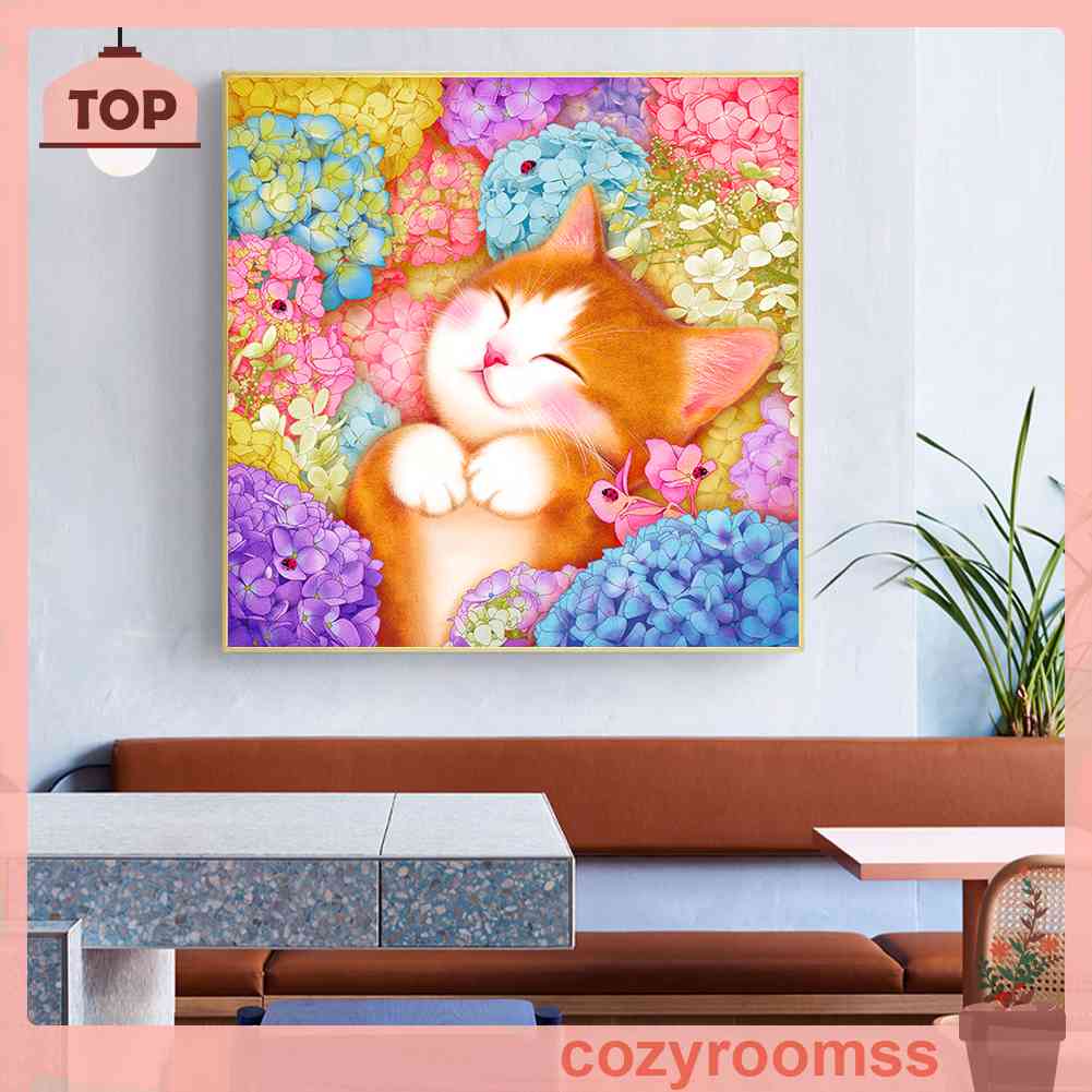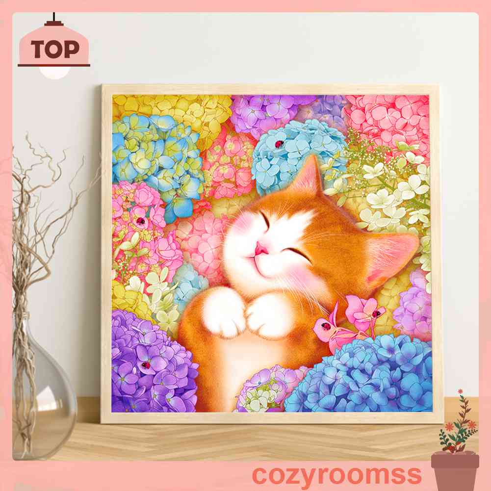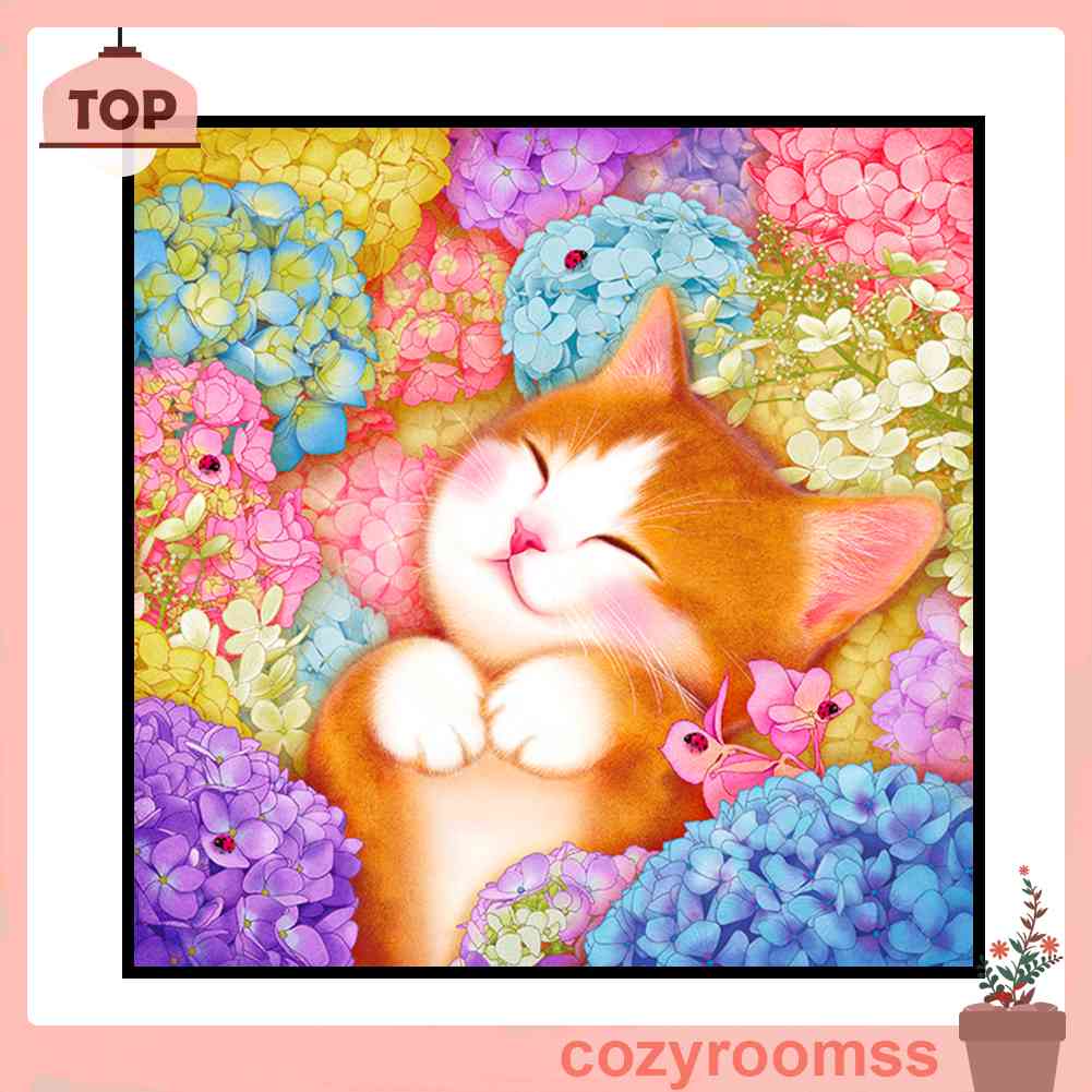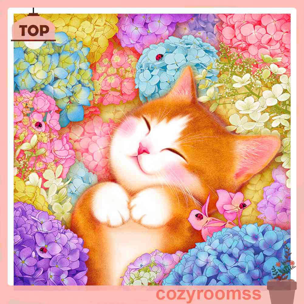 Giới thiệu Toàn Bộ Bộ Tranh Thêu Chữ Thập 3 Sợi Cotton 11CT Hình Mèo Và Hoa