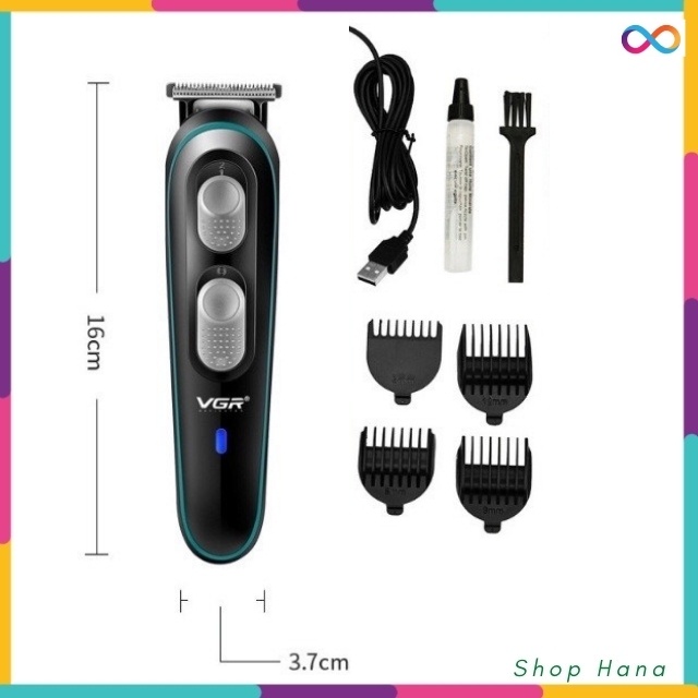 ************THÔNG TIN SẢN PHẨM: Tên sản phẩm; Tông đơ cắt tóc VGR Model V-055 Phụ kiện đi kèm tông đơ cắt tóc : - Cáp sạc USB, lược căn chỉnh; 4 lược (3/6/9/12mm) - Bàn chải làm sạch - Dầu tra lưỡi tông đơ - Hướng dẫn sử dụng tiếng Anh Chất liệu Lưỡi bằng hợp kim thép cao cấp bo tròn góc, an toàn tuyệt đối cho da Kích thước; 16 x 3,7 x 3 cm Trọng lượng tịnh; 125g Thời gian sạc: 1,5 giờ Thời gian sử dụng: 120 phút Điện áp: 100-240v Công suất: 10w Chế độ cung cấp điện: sạc qua cáp sạc cổng USB tương thích nhiều thiết bị sạc. (sạc đt.. sạc dự phòng, cổng usb máy tính. các thiết bị sạc khác có cổng usb..vv) Pin lithium ion có thể sạc lại. (tông đơ cắt tóc có thể được sử dụng khi được sạc đầy hoặc cắm vào nguồn điện)