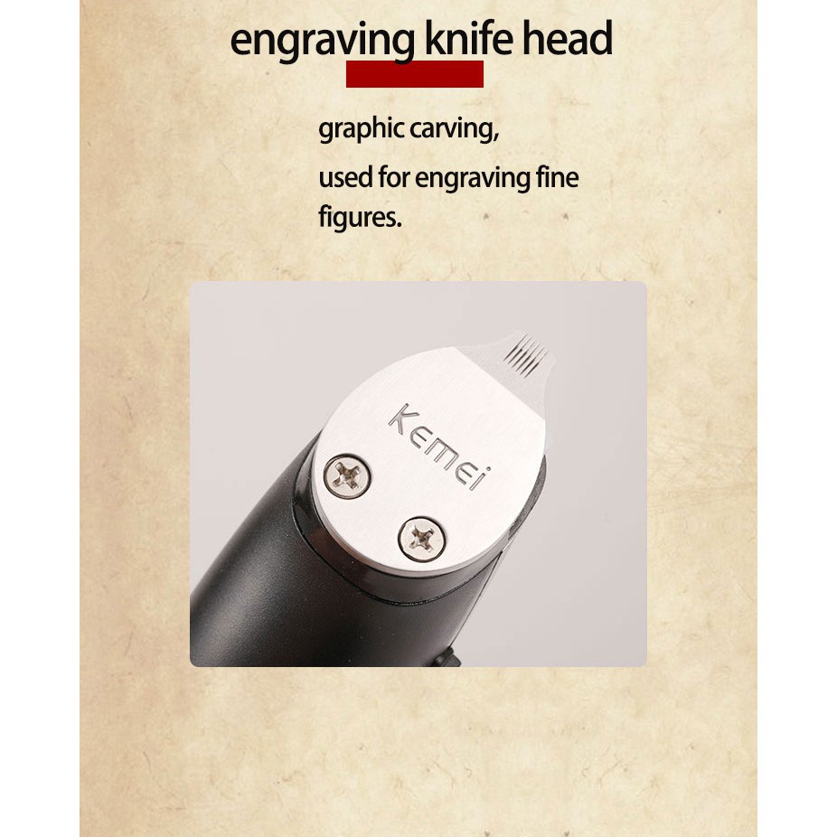 Thông số kỹ thuật: Loại sản phẩm: Tông đơ cắt tóc Chất liệu: ABS + thép không gỉ Tên thương hiệu: Kemei Kích thước: phích cắm EU Số mô hình: KM-7021 Chứng nhận chất lượng hàng hóa: ce Điện áp: 100-240V Tính năng-1: đầu dao khắc Tính năng-2: Khắc đồ họa Tính năng-3: với đầu dẫn cắt Tính năng-4: Máy cắt có độ chính xác cao