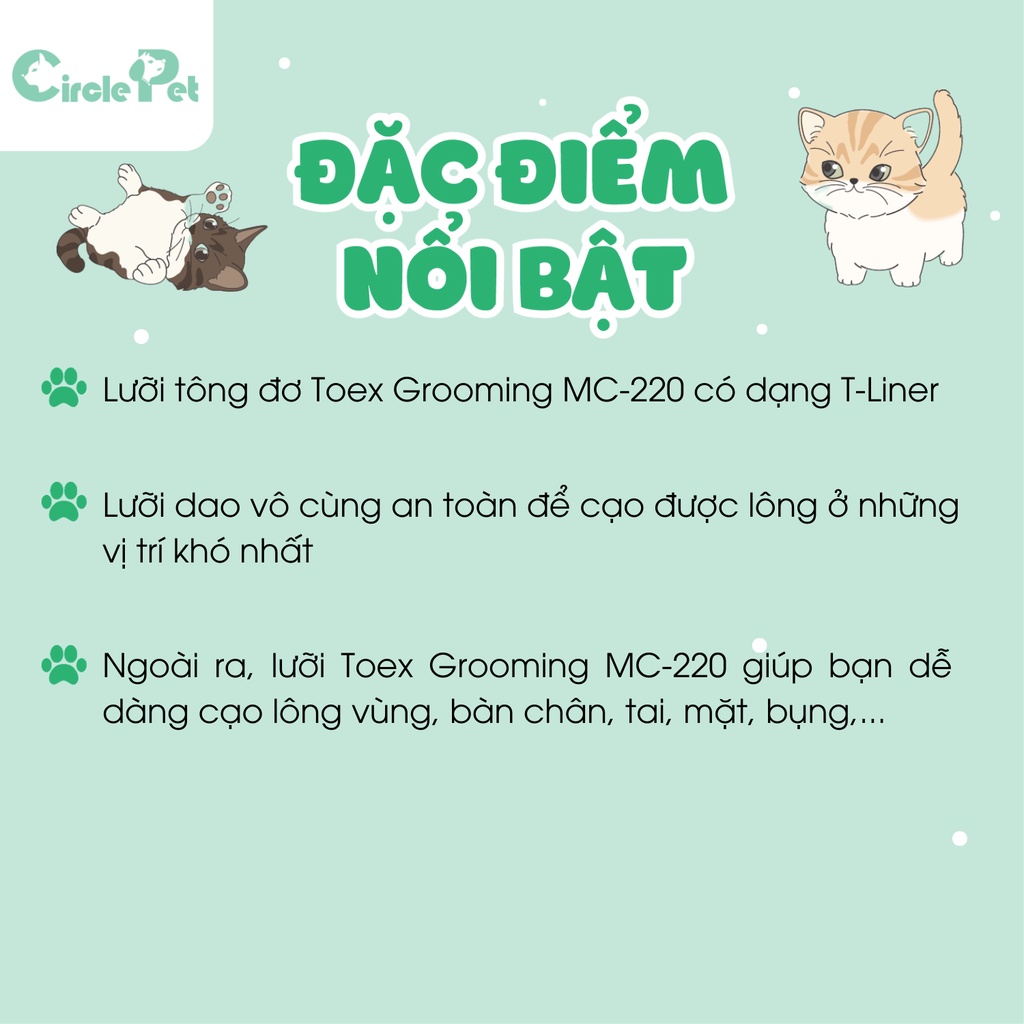 Sản phẩm Tông Đơ TOEX GROOMING MC-220 Cắt Tỉa Lông Thú Cưng Chạy Bằng Pin 10x5x17cm - Circle Pet đang có giá bán là 676,000đ. Hiện tại, đang có hàng sẵn tại shop của chúng tôi trên sàn TMĐT Shopee. Quý khách có thể ĐẾN NƠI BÁN để vào shop chúng tôi đặt mua online, trả góp, ship hỏa tốc, thanh toán thẻ visa/master, thông tin xuất hóa đơn đỏ (VAT) hay cần có thêm nhiều thông tin về sản phẩm.