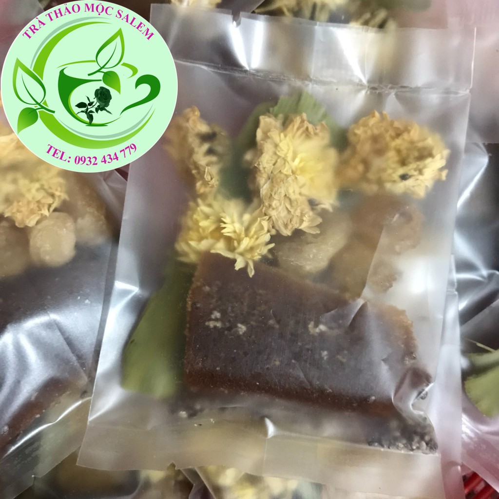 - Buổi trưa nắng nóng mệt , uống 1 ly trà bí đao đường nâu hoa cúc hoặc ngũ vị thảo giúp giải nhiệt , giảm mệt mỏi, giải độc, bổ huyết, bổ thận, ngủ ngon, thúc đẩy cơ thể và làm dịu cơn khát, tiếp thêm sinh lực cho dạ dày và ruột. - Bí đao : Là sự kết hợp giữa bí đao nấu với đường nâu cô đặc, hoa cúc Hàng Châu , hạt chia Úc, long nhãn Hưng Yên, lá dứa.. - Ngũ vị thảo : Cây cúc dại, cây sương sáo, Mật hoa vàng, Bạc hà, Cỏ râu mèo nấu với đường nâu. Mix cùng hoa cúc Hàng Châu , hạt chia Úc, long nhãn Hưng Yên, lá dứa.. - Mỗi gói pha được 1 ly 250ml nước, nếu bạn uống lạnh pha 160ml nước thôi nhé. Pha với nước nóng, khuấy tan , thêm đá là có thể uống. - Hạn sử dụng : 12 tháng, bảo quản ngăn mát tủ lạnh