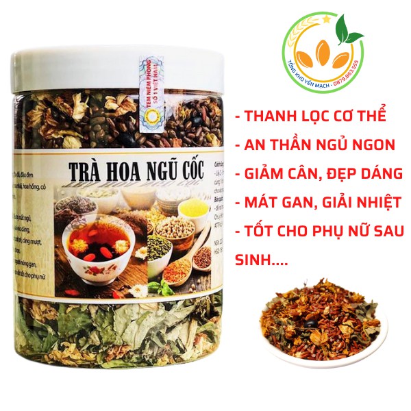1. Thông tin sản phẩm trà hoa ngũ cốc - Xuất xứ: Việt Nam - HSD: 18 tháng -Quy cách đóng gói : 1 hộp 300gr