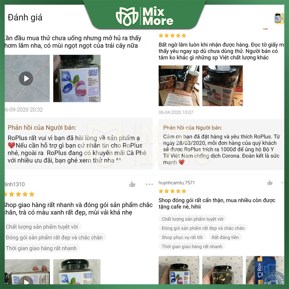 MIXMORE CAM KẾT VỚI KHÁCH HÀNG - Hỗ trợ tư vấn bảo hành với bất cứ sản phẩm nào thuộc Mixmore sản xuất, phân phối. - Đổi trả miễn phí hoặc hoàn tiền 100% nếu sản phẩm lỗi, quý khách hàng không hài lòng. - Nguồn nguyên liệu, nhà cung cấp uy tín, nguồn gốc rõ ràng, hợp vệ sinh, an toàn sức khỏe. - Đóng gói cẩn thận, giao ngay sau khi quý khách đặt hàng.
