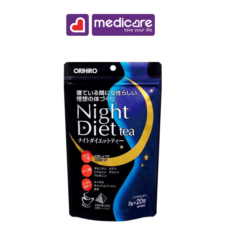 ORIHIRO NIGHT DIET TEA HỖ TRỢ GIẢM CÂN TÚI 20GÓI THÔNG TIN SẢN PHẨM: • Đơn vị tính và Quy cách đóng gói: Một túi – 20 gói • Xuất xứ: nhật: Nhật Bản • Phân phối bởi: Công Ty TNHH THƯƠNG MẠI EGAO VIỆT NAM CÔNG DỤNG: • Hỗ trợ giảm cân giữ dáng THÀNH PHẦN: • Trà Rooibos (hồng trà Nam Phi) lá senna Châu Phi rang cỏ ngọt bột gừng hoa cúc rang bột gừng đỏ citrulline ornithine/glycine arginine lysine. HƯỚNG DẪN SỬ DỤNG: • Cho 1 gói vào cốc rót nước nóng vào để yên khoảng 2 đến 3 phút rồi thưởng thức. • Nếu dùng bình trà thì với mỗi gói sẽ dùng với 200 ~ 250 ml nước nóng để khoảng 3 phút rồi thưởng thức. • Thời gian ngâm và lượng nước nóng quý khách hãy điều chỉnh theo khẩu vị của mình. Hướng dẫn bảo quản: Bảo quản nơi khô ráo nhiệt độ dưới 30°C tránh tiếp xúc trực tiếp với ánh nắng mặt trời. LƯU Ý: • Để xa tầm tay trẻ em. • Không dùng quá liều quy định. Nếu cần thêm thông tin xin hỏi ý kiến Bác sĩ. • Chúng tôi luôn cố gắng đảm bảo tất cả thông tin về công dụng và hướng dẫn sử dụng của sản phẩm luôn được cập nhật đầy đủ và chính xác trên trang web. • Đọc kỹ thông tin sản phẩm trên bao bì hoặc tờ rơi hướng dẫn đính kèm trước khi dùng và chỉ được sử dụng theo như hướng dẫn.