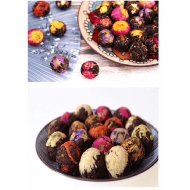 🌸🌸🌸 5 viên gồm 5 loại ngẫu nhiên 🌿🌿🌿 Phổ Nhĩ hoa viên của Salem Tea đặc biệt hơn các loại trà phổ nhĩ hoa khác ở chỗ là được sản xuất từ giống chè cổ thụ Vân Nam Điền Hồng, nó mọc tự nhiên trên các vùng núi cao, khí hậu lạnh. Búp chè Điền Hồng Vân Nam , có lông mao màu trắng khi sao vàng được chế biến thành một loại trà có hậu vị thoang thoảng mùi mật ong và có màu vàng đen đan xen. Trà Phổ Nhĩ có màu nước nâu đỏ, sóng sánh rất đẹp, mùi nồng thoang thoảng rất đặc trưng, vị chát dịu, hậu ngọt, uống vào có cảm giác thông cổ. Những ai uống quen sẽ yêu thích cái hương vị rất riêng đó.