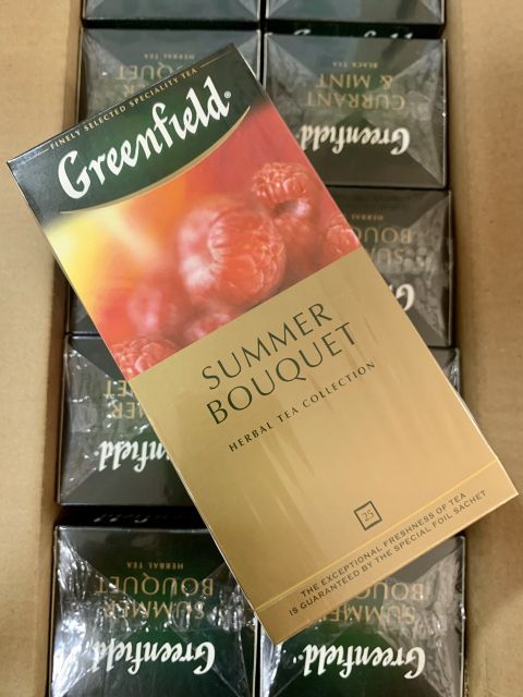 - Trà Greenfield cao cấp của Nga được tạo nên từ những búp trà mượt mà nhất tại các đồn điền mênh mông, sau khi lựa chọn cẩn thận, hái bằng tay, chuyển đến nhà máy ngay lập tức để đảm bảo chất lượng tốt nhất.