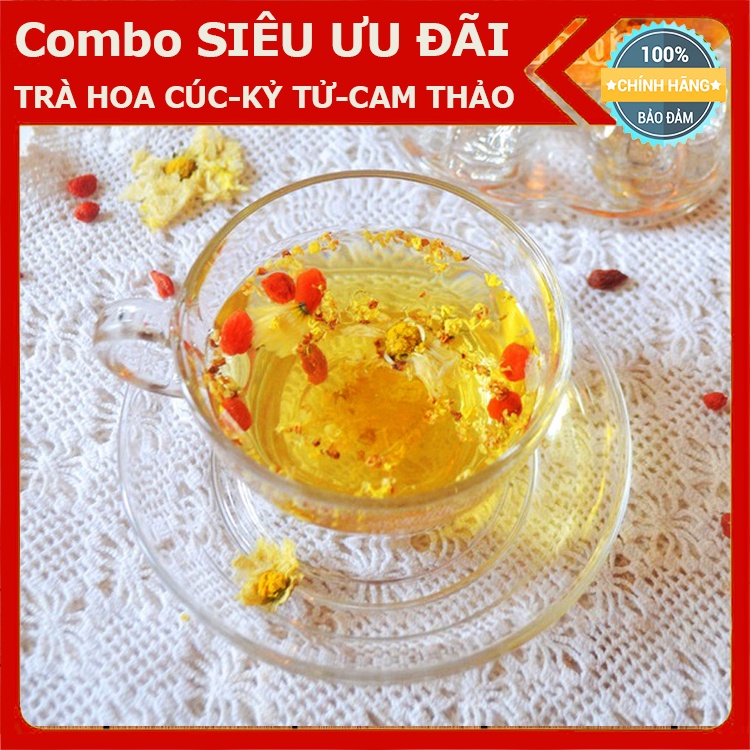 Gói COMBO Trà Thảo Mộc gồm 2 loại Trà Thượng Hạng: 100g Trà Kỷ Tử + 80g Trà Hoa Cúc kết hợp lại với nhau ⚡COMBO ÁP DỤNG NGẪU NHIÊN CHO CẢ CÚC ĐẠI ĐOÁ VÀ CÚC TIẾN VUA. Nếu bạn muốn lấy cụ thể loại cúc nào vui lòng inbox báo Shop nhé 😘😘😘 💖 Mặc dù văn hóa uống trà của Việt Nam hay các nước Á Đông đã có từ rất lâu và đang tồn tại hàng ngàn loại trà nhưng trà hoa cúc – kỷ tử - cam thảo là một trong những loại trà phổ biến nhất cho đến nay.💖 👉Nguyên nhân của sự phổ biến Trà Thảo Mộc Hoa Cúc Kỷ Tử do dễ dàng chế biến tại nhà, cái hay nữa là cách kết hợp đơn giản mà thần kỳ các thành phần lại với nhau để tăng thêm hương vị cũng như lợi ích cho sức khỏe. 👉Kỷ tử, hoa cúc sấy khô đều là những thành phần giàu dinh dưỡng tuyệt vời trong việc cải thiện sức khỏe của mắt, hỗ trợ bồi bổ sinh máu, thanh nhiệt thải độc hay có thể làm thức uống trà thảo mộc Detox hoàn hảo cho mọi người trong tiết trời nóng bức này. 🌻 CÁCH PHA TRÀ THẢO MỘC HOA CÚC – KỶ TỬ - CAM THẢO Mỗi lần uống chỉ cần: 1 muỗng canh kỷ tử 7 -10 bông hoa cúc Nước sôi. Mật Ong Rừng (Nếu có điều kiện cho thêm càng tăng sự thơm ngon và bổ dưỡng) Cho hoa cúc, kỷ tử và cam thảo vào ly, chế nước sôi cho ngập lấp xấp lắc nhẹ 5 giây rồi đổ nước đầu đi gọi là tráng trà Sau đó chế nước nóng ngập đủ lượng uống. Để 5 phút hãm trà và thưởng thức – để lâu hơn nếu bạn muốn hương vị của trà đậm hơn. Với 1 ly như vậy có thể làm 3 lần uống cho tới khi nhạt nước thì thôi. Thêm chút mật ong rừng và chanh để tạo vị chua ngọt nếu thích. Đặc biệt, sau khi uống bạn có thể ăn luôn kỷ tử.