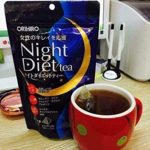Giới thiệu Trà túi lọc giảm cân đêm Nhật night diet orihiro 20 gói (xanh/hồng collagen)