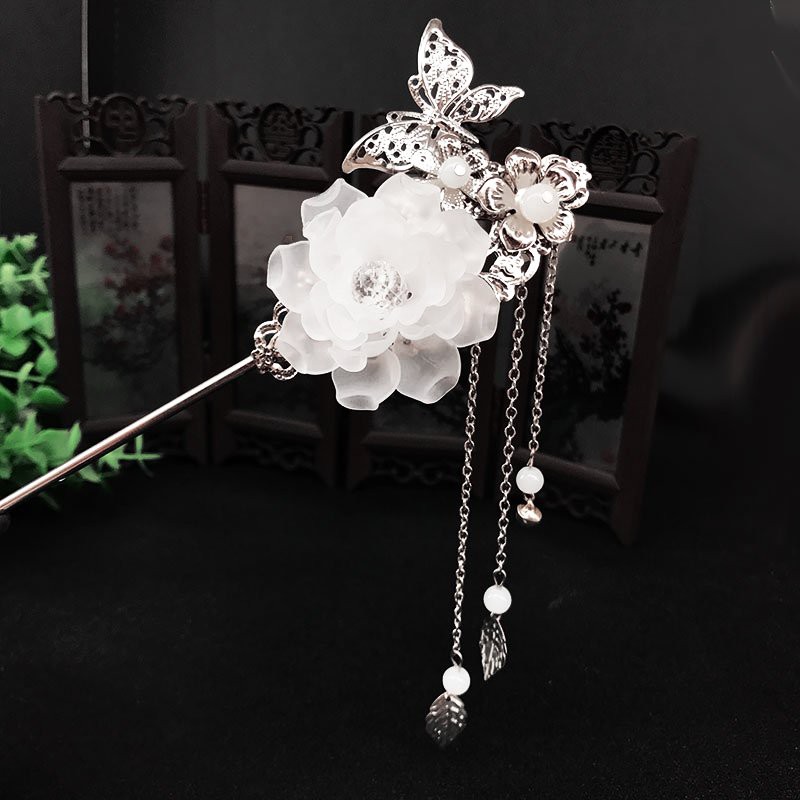 Giới thiệu Trâm cài tóc bông hoa mẫu đơn hồ điệp cổ trang hạt rơi