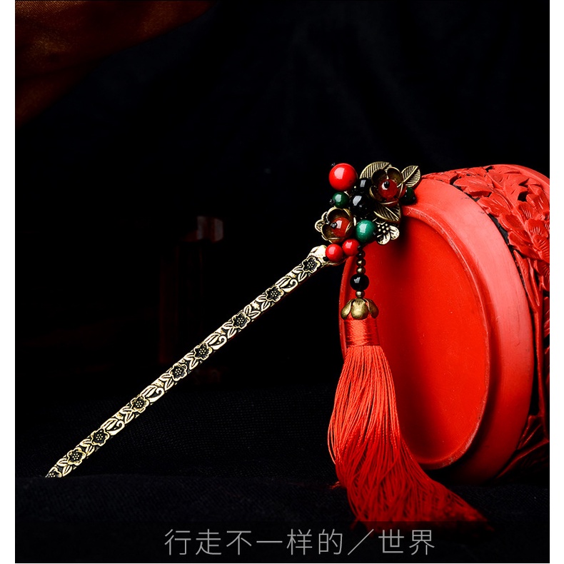 Giới thiệu Trâm Cài Tóc Cô Dâu Dáng Dài Phối Tua Rua Phong Cách Hanfu Cổ Điển
