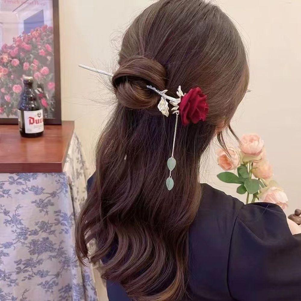 Giới thiệu Trâm Cài Tóc Hình Hoa Hồng Phối Tua Rua Phong Cách Trung Hoa Cổ Điển Cho Cô Dâu