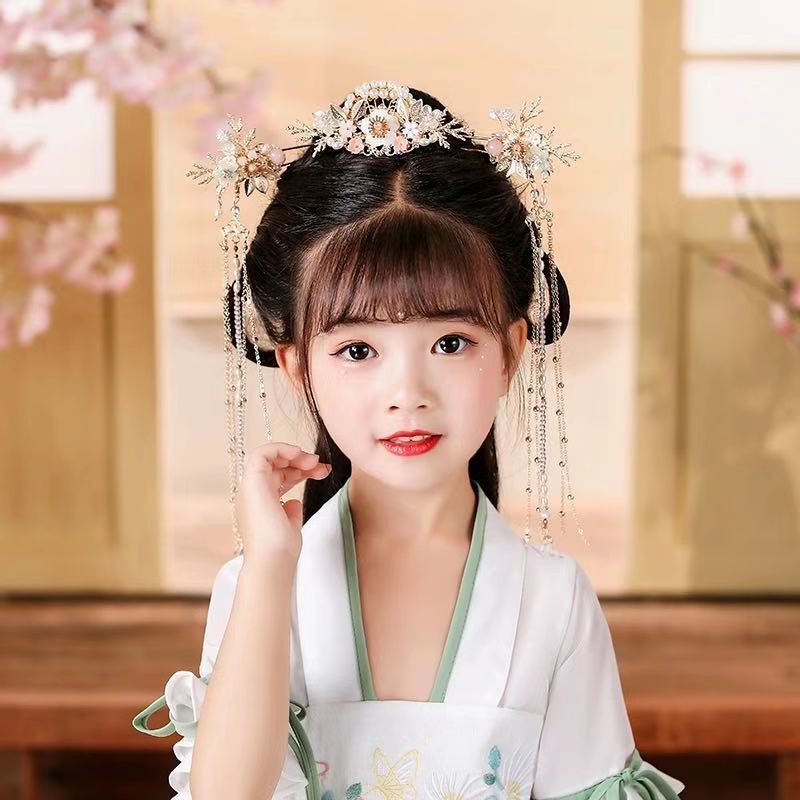 Nơi giao hàng: Tỉnh Giang Tô Chất liệu: hợp kim Phong cách: ngọt ngào Loại phụ kiện tóc: kẹp tóc Phụ kiện tóc trang phục cổ đại cho trẻ em Kẹp tóc phụ kiện Hanfu