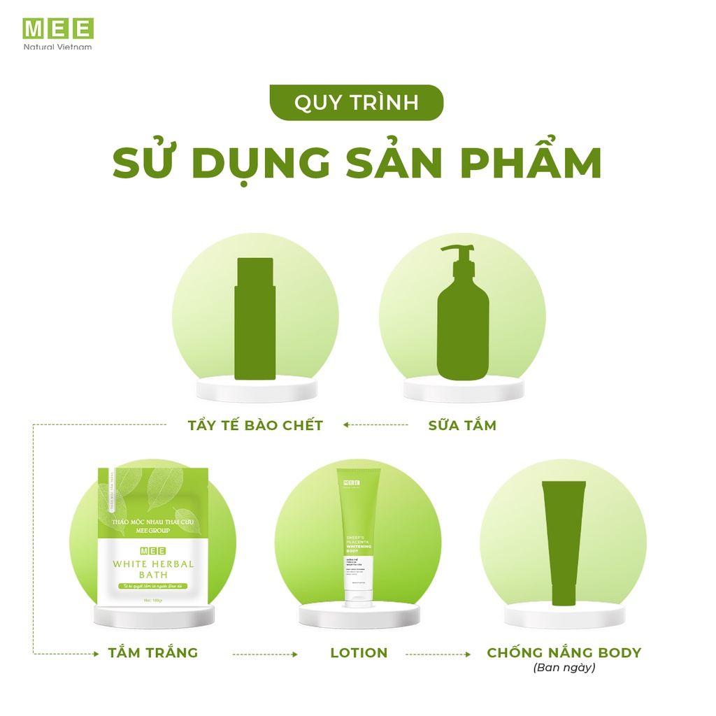 Giới thiệu Bộ Trắng Da Nhau Thai Cừu Mee Natural Thảo Mộc Tắm Trắng Kết Hợp Dưỡng Thể Nhau Thai Cừu Dưỡng Da Trắng Hồng, Mềm Mịn