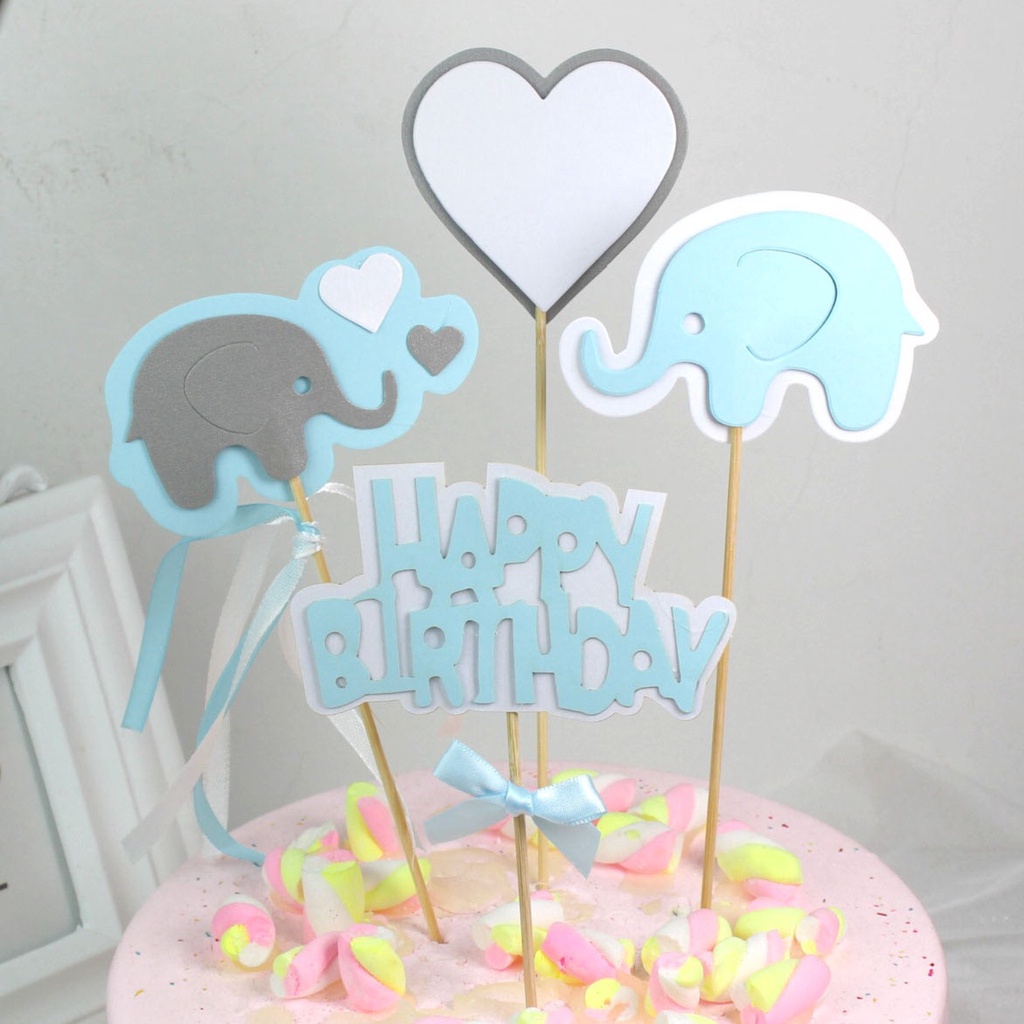 Giới thiệu Trang trí bánh sinh nhật bánh kem - Sét cắm giấy voi 2 lớp xanh, hồng phụ kiện bánh sinh nhật