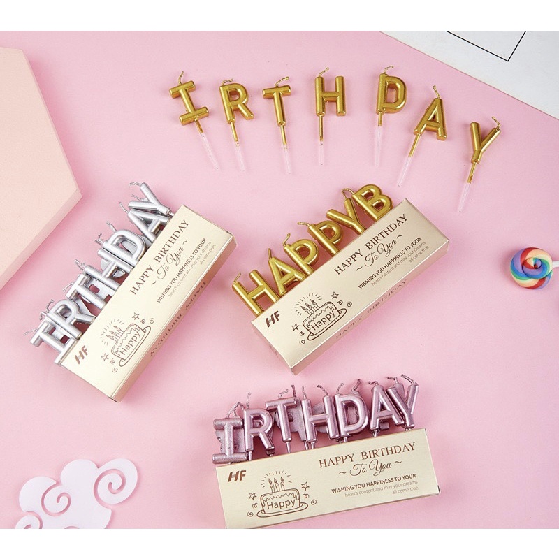 Nến thiết kế hình chữ Happy birthday 3d vô cùng bắt mắt