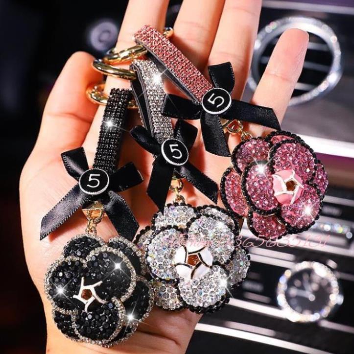 Giới thiệu Trang Trí Ô Tô Móc Khóa Xe Hơi Đính Đá Hình Hoa Trà Cao Cấp
