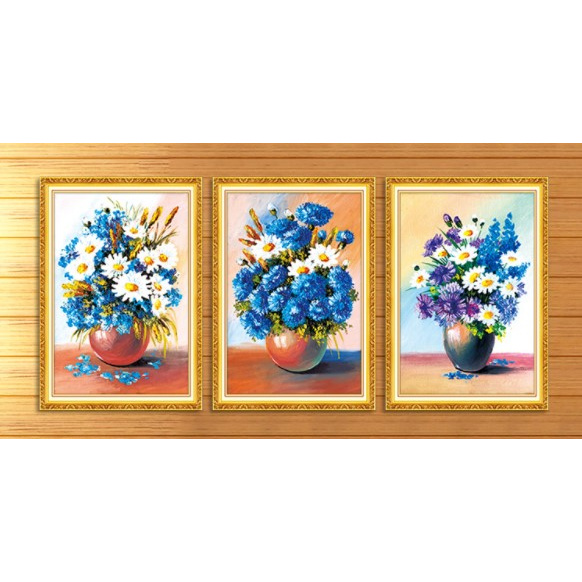 TRANH ĐÍNH ĐÁ 3 BÌNH HOA GHÉP LG1051 (115X50) CM tranh chưa thành phẩm Giá PRT