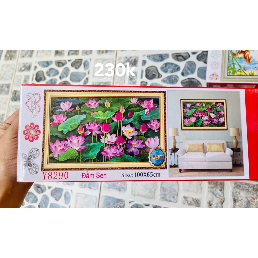 Giới thiệu Tranh đính đá phong cảnh Hoa Sen KT: 100x65cm (tranh chưa đính đá, chưa khung)