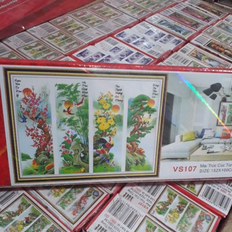 Tranh đính đá tứ quý tùng cúc trúc mai vs107 (152×100) Giá JOY
