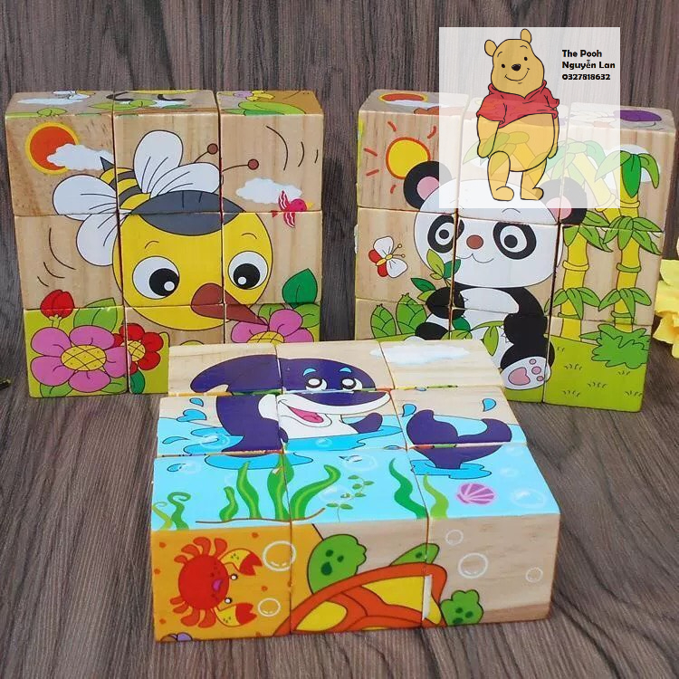 Giới thiệu Đồ chơi tranh ghép gỗ 6 mặt 9 miếng- xếp hình 3D đa chiều khối cục cho bé- The Pooh