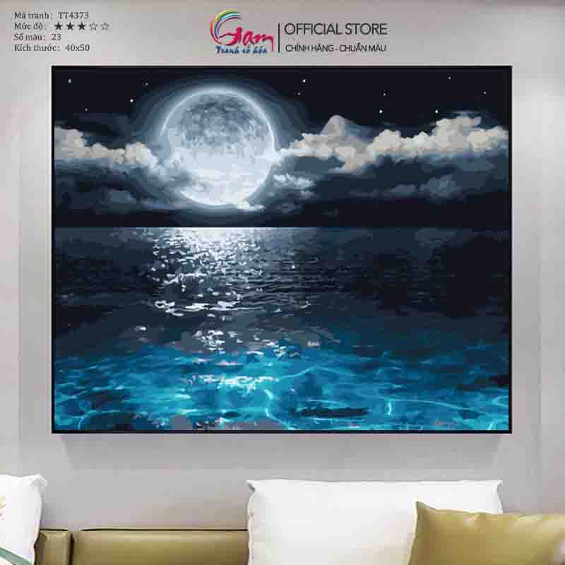 Giới thiệu Tranh Số Hóa Phong Cảnh Biển Đêm Trăng GAM Có Khung 40x50cm TT4373