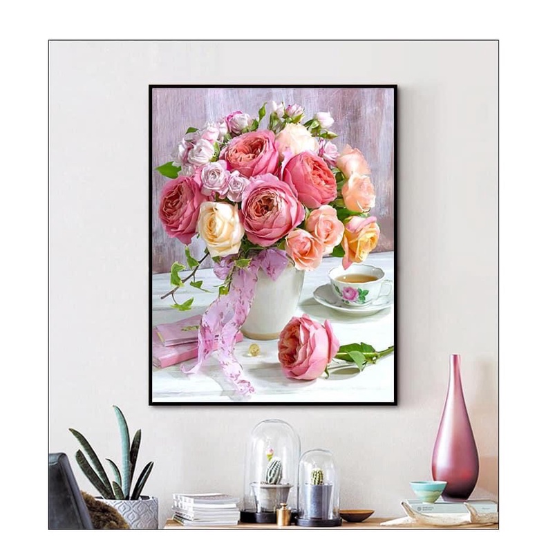 Giới thiệu Tranh thêu Bình Hoa Hồng LV3407, MN0231, HH0911, MN0237 tranh chưa thêu