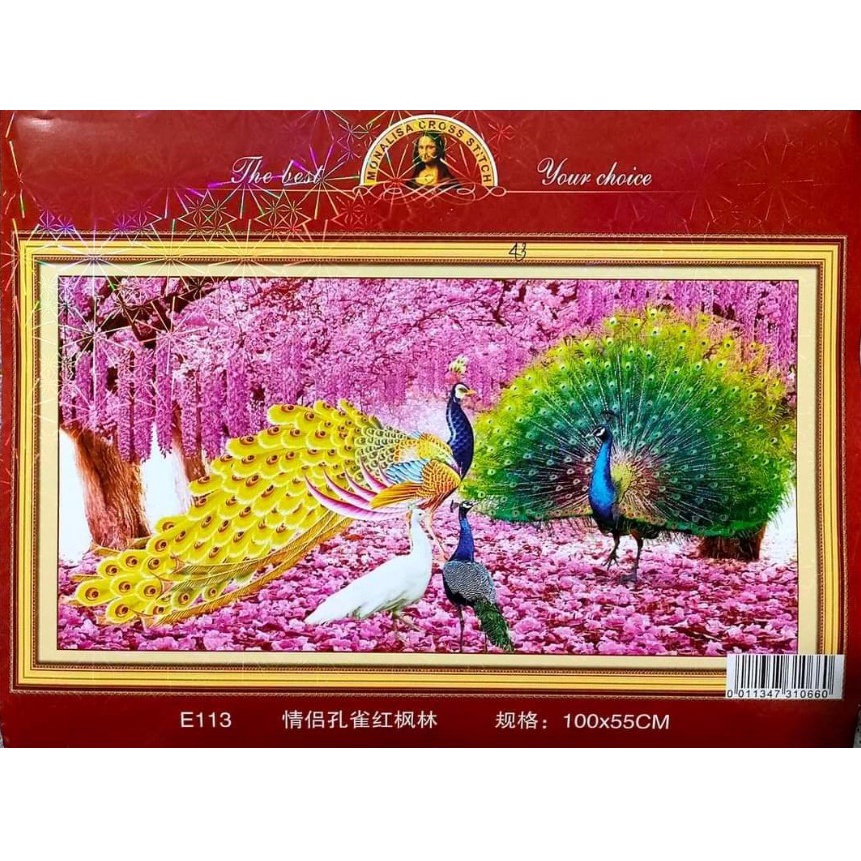 Tranh thêu chữ thập chim công E113 - 100x55 - tranh chưa thêu
