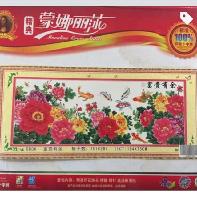 Giới thiệu Tranh thêu chữ thập chín con cá và hoa mẫu đơn
