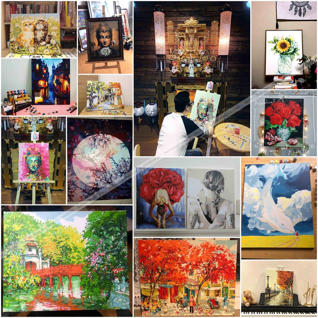 ✅Mô tả chung: - Kích thước tranh: 40x50cm ( độ dày 1.5cm) - Vải vẽ: Chất liệu vải canvas được in số và căng khung sẵn. - Bộ màu (20-24 màu): Màu acrylic dùng tô trực tiếp không cần pha thêm. - Cọ vẽ: 3 cọ vẽ size khác nhau để tô vẽ. - Sơn bóng: Tác dụng của sơn bóng giúp bảo quản tranh và màu sau khi tô hoàn thiện. - Bản nháp: Dùng đối chiếu tìm số với vải canvas. - Phụ kiện treo tường: Đinh ba chân, móc treo, 2 ốc vít.