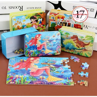 Bộ tranh lắp ghép hoạt hình dễ thương, 1 bộ tranh gồm có 60 miếng, các hình công chúa, nàng tiên lá, các con vật,....