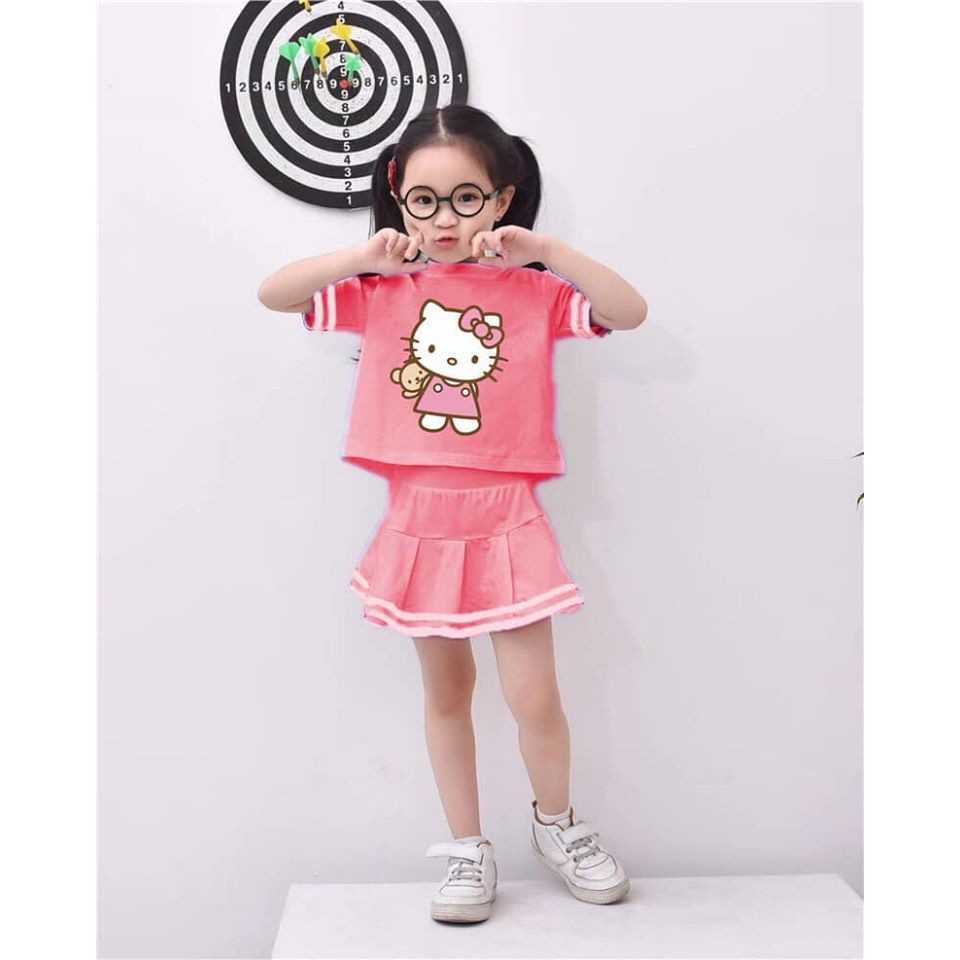 Đồ bộ trẻ em cho bé gái set áo kity mix chân váy xòe siêu xinh JIMADO SL836