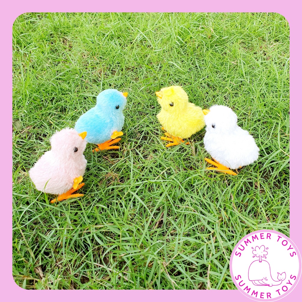 Đồ chơi trẻ em gà con vặn cót : Thiết kế hình chú gà xinh xắn, dễ thương. Mô phỏng chân thực nhất, đem lại sự thích thú cho bé. Sản phẩm hoàn toàn không gây hại cho bé. Đồ chơi gà con vặn cót cổ điển xinh xắn dành cho các bé trên 2 tuổi. Bé chỉ cần vặn cót theo chiều kim đồng hồ gà con đồ chơi sẽ nhảy rất vui nhộn. -Kích thước sản phẩm: Chiều dài 7.5cm / Chiều rộng 6cm / Chiều cao 8.5cm,Chất liệu: Nhựa -Màu sắc: Hồng, Xanh dương, Trắng, Vàng