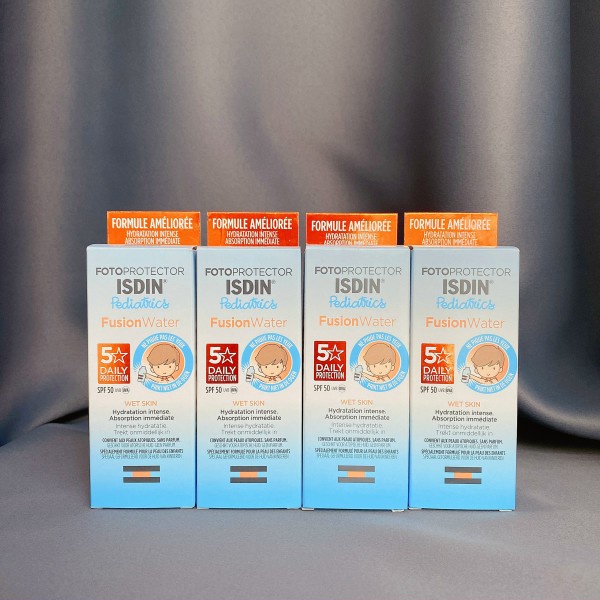 ISDIN Pediatrics Fusion Water SPF 50+ là kem chống nắng đầu tiên được bào chế để ngăn ngừa ngứa ở trẻ sơ sinh và mắt trẻ em, nhờ công nghệ AN TOÀN-EYE TECH của ISDIN.