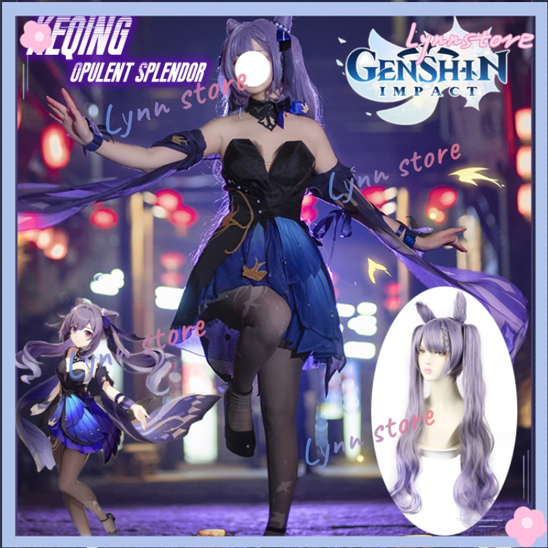 Thời Trang Nữ > Đồ hóa trang > Trò chơi Genshin Impact Keqing Cosplay Trang phục Opulent Splendor Keqing phù hợp và Phụ kiện Cosplay Tóc giả cho Quà tặng Cô gái