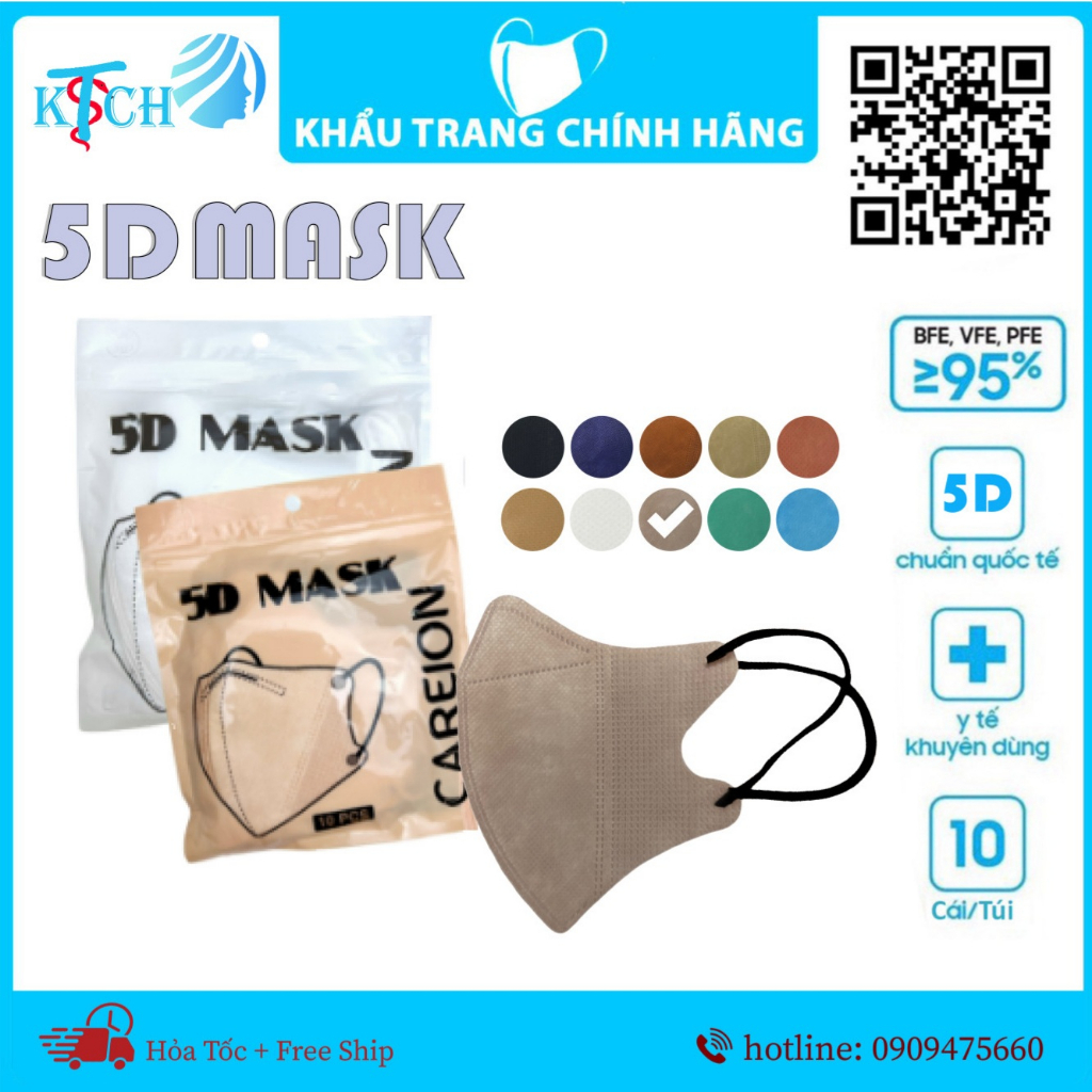 Khẩu trang y tế 5D 3 lớp Vải Không Dệt & Giấy Kháng Khuẩn - Hộp 10 cái với thiết kế 5D độc đáo siêu vừa vặn, dễ thở, tăng cảm giác thoải mái cho người dùng. Thời trang là điểm mạnh của các dòng sản phẩm 5D, đặc biệt giúp các chị em phụ nữ không bị lem son môi trong quá trình sử dụng. - Quy cách đóng gói: 10 cái/hộp - Màu sắc: Trắng, Xanh, Hồng - Sản phẩm đạt đầy đủ các tiêu chuẩn: ISO 13485:2016, TCVN 8389-1/2020 CẤU TẠO SẢN PHẨM - Cấu trúc lọc đa lớp: giúp ngăn ngừa 99% vi khuẩn, an tâm với bụi PM 2.5 + 2 lớp vải không dệt cao cấp + 1 lớp giấy kháng khuẩn Meltblown: vải lọc không dệt sợi siêu mịn được sản xuất từ các vi sợi nano với quy trình đặc biệt - Thiết kế 5D thông minh: các lớp được tích hợp một cách khéo léo, ôm vừa vặn khuôn mặt, cho cảm giác thoải mái, không gây bí thở - Dây đeo thun: mềm mại, co giãn tốt tạo cảm giác thoải mái tuyệt đối, không bị bó chặt khi dùng - Lớp ngoài (in họa tiết): giúp ngăn cản các hạt chất lỏng, giọt bắn văng ra khi tiếp xúc với người khác - Lớp trong (màu trắng): mặt vải mịn không xơ quay vào trong, sát với da mặt không gây kích ứng da có đặc tính thấm nước nhằm hút mồ hôi, tạo sự thoải mái cho người sử dụng CÔNG DỤNG SẢN PHẨM - Sử dụng để bảo vệ đường hô hấp, tránh khói bụi - An toàn khi sử dụng - Không lem son môi - Thích hợp sử dụng trong tất cả các lĩnh vực: y tế, trung tâm thẩm mỹ, môi trường công nghiệp, sử dụng hằng ngày để ngăn ngừa khói bụi và dịch bệnh HƯỚNG DẪN SỬ DỤNG 1. Đặt hướng nẹp mũi lên trên. Đeo dây vào cả hai tai 2. Kéo viền dưới xuống qua cằm, điều chỉnh phù hợp với khuôn mặt 3. Cố định và ấn chặt nẹp mũi trên sống mũi - Chỉ sử dụng 1 lần rồi vứt vào thùng rác an toàn, có nắp đậy. Không tái sử dụng khẩu trang dùng một lần - Đeo mặt màu ra ngoài, mặt trắng vào trong - Che kín cả mũi lẫn miệng