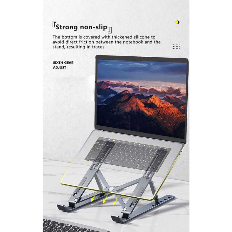 Giới thiệu Sang Trọng Giá Đỡ Bằng Hợp Kim Nhôm 6 Cấp Cho Notebook / Máy Tính Bảng 11-17 inch