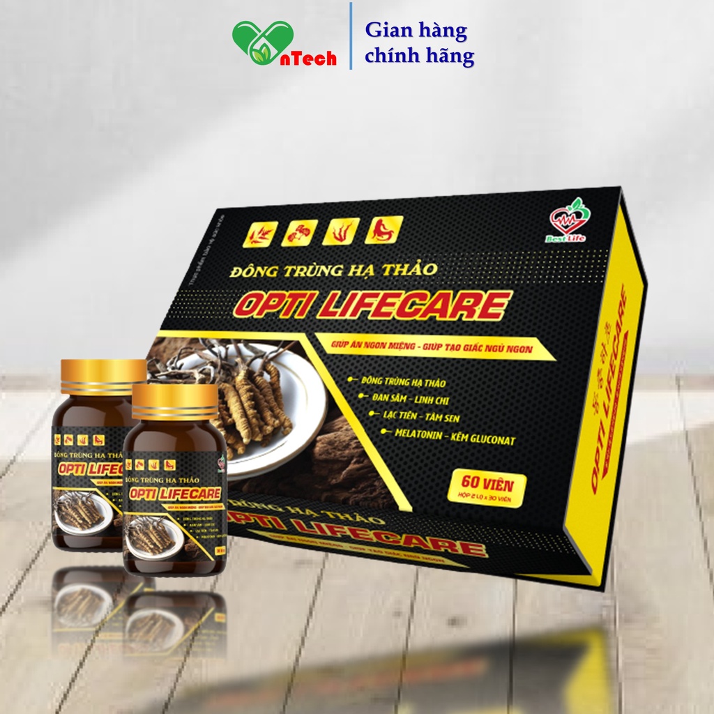 Giới thiệu Đông trùng hạ thảo giúp ăn ngon ngủ tốt bồi bổ cơ thể giảm mệt mỏi suy nhược cơ thể Best Life OPTI LIFECARE hộp 60 viên