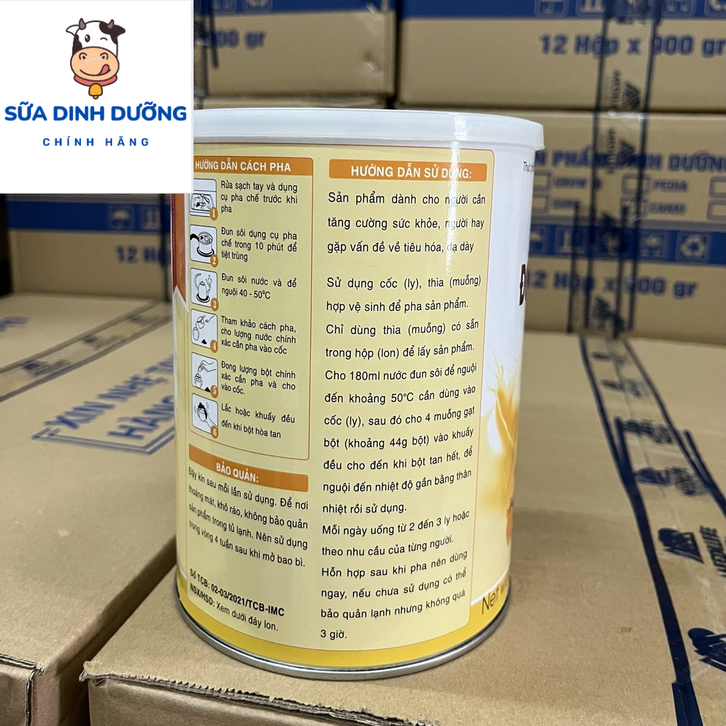 - Cách pha sữa: + Đun nước sôi khoảng 5 phút, sau đó để nguội đến mức còn ấm (khoảng 50 độ) + Rót 180ml nước vào dụng cụ pha chế + Cho từ từ 4 muỗng gạt và khuấy đều cho đến khi bột tan vào nước + Mỗi lần uống 1 ly, dùng 2-3 ly mỗi ngày để cung cấp đầy đủ dinh dưỡng cho cơ thể * Lưu ý: Chỉ pha vừa đủ cho mỗi lần dùng, phần thừa sau 1 giờ nên bỏ đi.