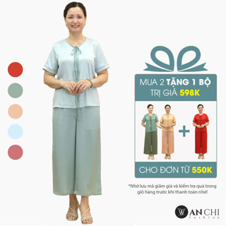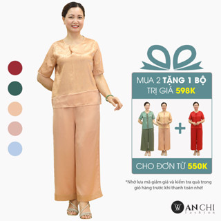 Giới thiệu Đồ Bộ Trung Niên Nữ Lụa Họa Tiết Cao Cấp ANCHI B30 Hồng, Set Đồ Mặc Nhà Quà Tặng Cho Mẹ