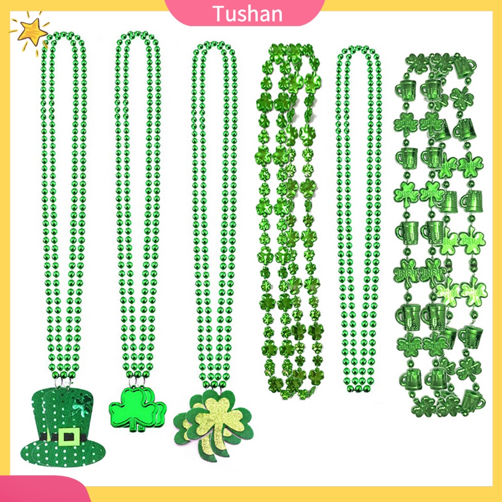 Giới thiệu [Ts] Vòng cổ Chuỗi Hạt Dài Mặt Cỏ Ba Lá May Mắn Và Chữ Saint Patrick Cho Người Lớn