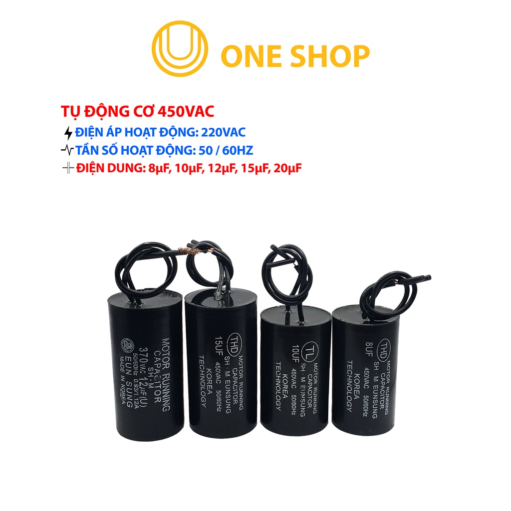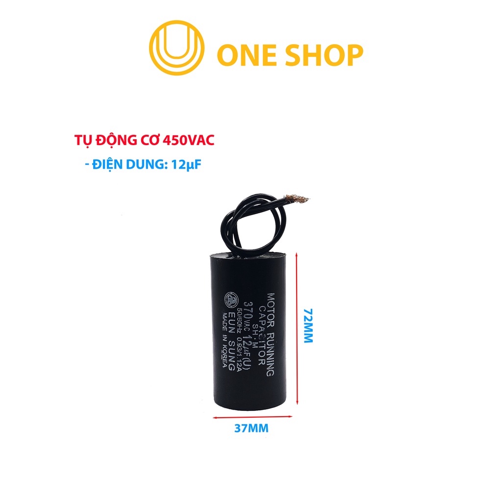 Tụ Động Cơ 370VAC Tụ Động Cơ 370VAC được chế tạo bằng vật liệu phim polypropylene và không phân cực. Tụ được thiết kế để làm việc liên tục trong suốt thời gian hoạt động của mô-tơ. Chức năng của tụ động cơ thường dùng để làm lệch pha điện áp đặt cuộn dây thứ hai và đồng thời đảm bảo hiệu suất hoạt động của mô-tơ. Để động cơ hoạt động được hiệu suất cao chúng tao phải trọn giá trị phù hợp với công suất của động cơ.