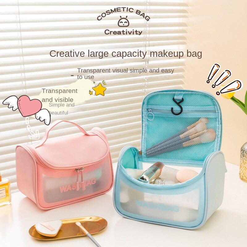 Giới thiệu túi mỹ phẩm trong suốt túi nhựa trong đựng mỹ phẩm Túi Đựng Mỹ Phẩm Da PU Mặt Nhám Cỡ Lớn Di Động Đa Năng Chống Thấm Nước Có Móc Treo Tiện Dụng Mang Theo Du Lịch